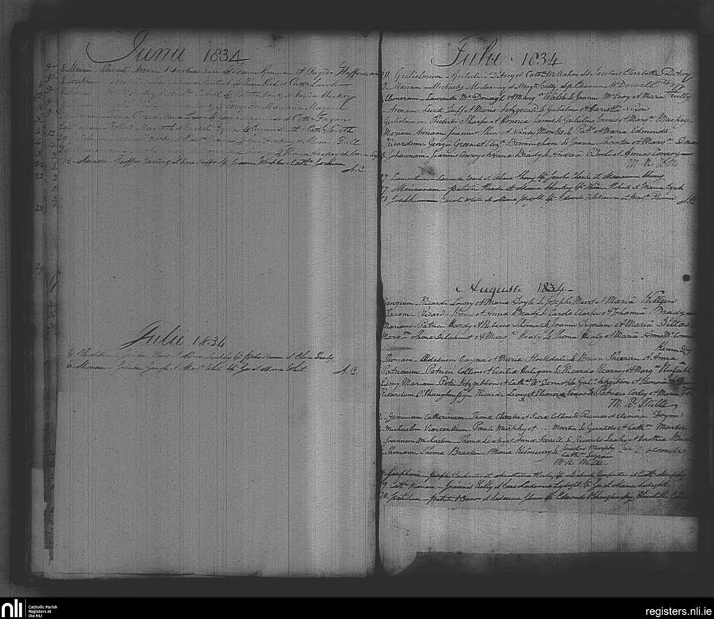 St. Michan's, Dublin city; County of Dublin; Archdiocese of Dublin. Baptisms, June 1834 to Aug. 1834
