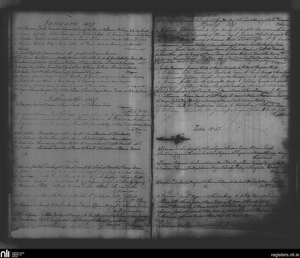 St. Michan's, Dublin city; County of Dublin; Archdiocese of Dublin. Baptisms, Jan. 1837 to June 1837