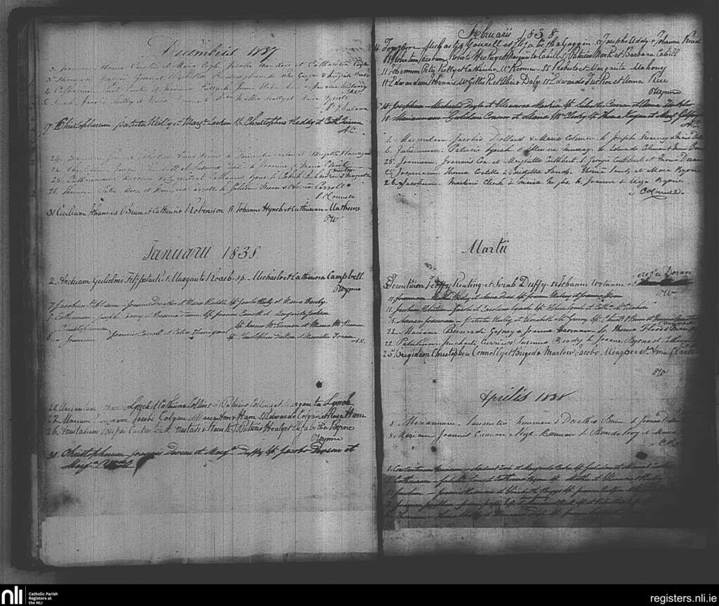 St. Michan's, Dublin city; County of Dublin; Archdiocese of Dublin. Baptisms, Dec. 1837 to Apr. 1838