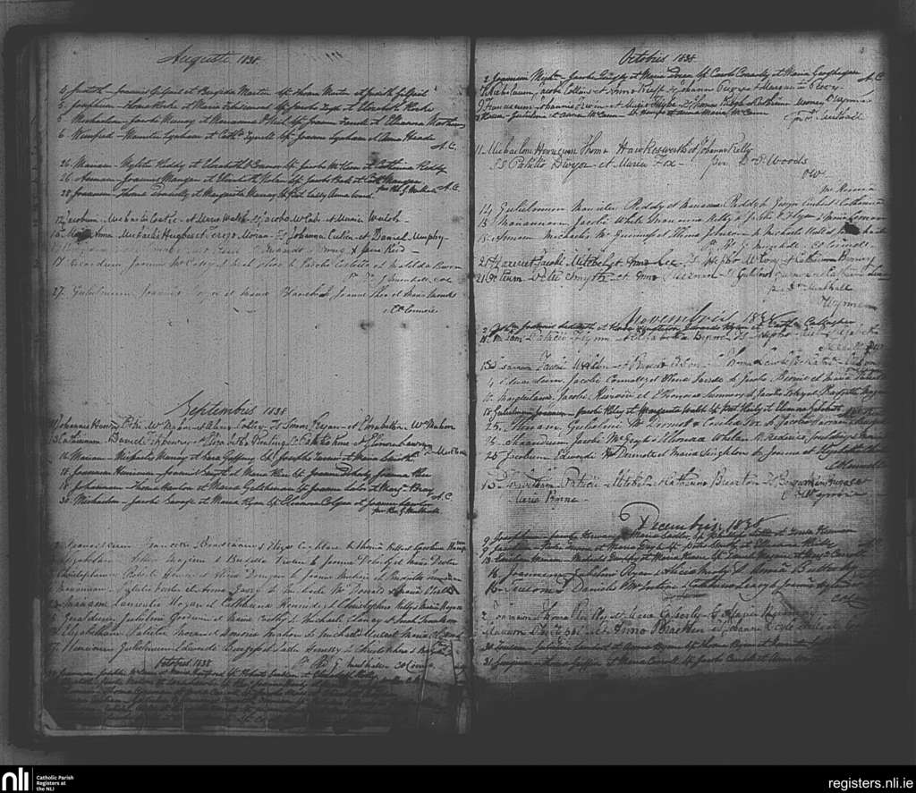 St. Michan's, Dublin city; County of Dublin; Archdiocese of Dublin. Baptisms, Aug. 1838 to Dec. 1838