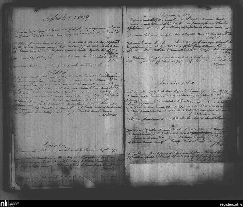 St. Michan's, Dublin city; County of Dublin; Archdiocese of Dublin. Baptisms, Sep. 1839 to Jan. 1840
