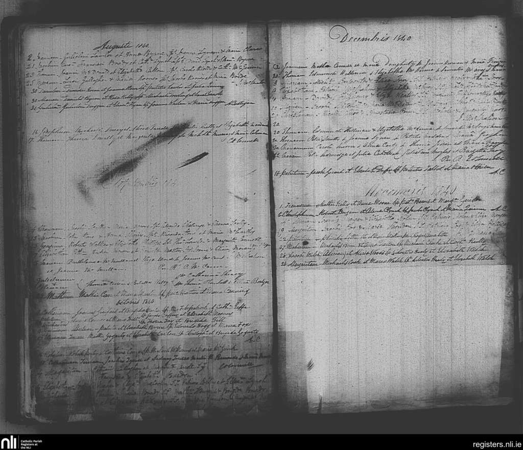 St. Michan's, Dublin city; County of Dublin; Archdiocese of Dublin. Baptisms, Aug. 1840 to Dec. 1840