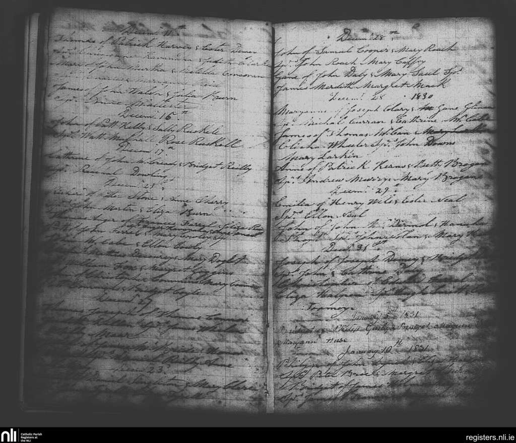 St. Michan's, Dublin city; County of Dublin; Archdiocese of Dublin. Baptisms, Dec. 1830 to Jan. 1831