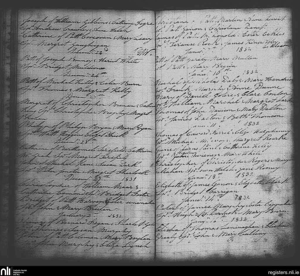 St. Michan's, Dublin city; County of Dublin; Archdiocese of Dublin. Baptisms, Dec. 1831 to Jan. 1832