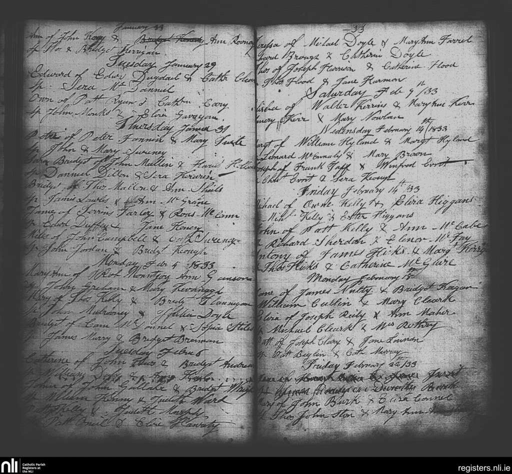 St. Michan's, Dublin city; County of Dublin; Archdiocese of Dublin. Baptisms, Jan. 1833 to Feb. 1833