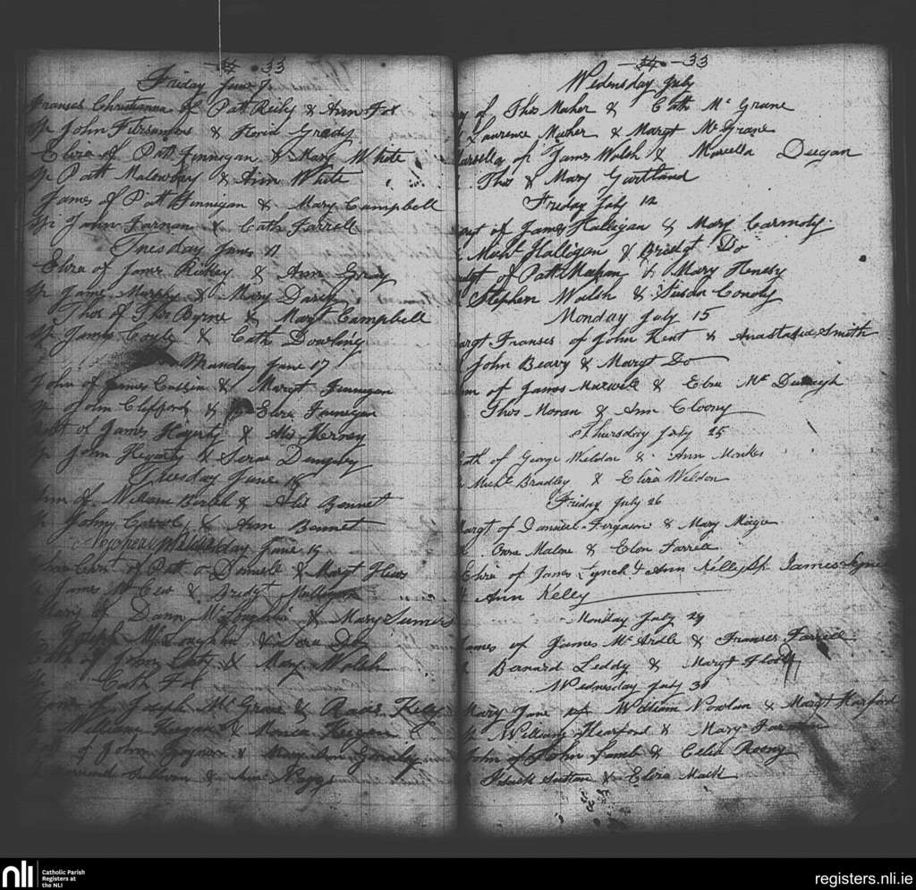 St. Michan's, Dublin city; County of Dublin; Archdiocese of Dublin. Baptisms, June 1833 to July 1833