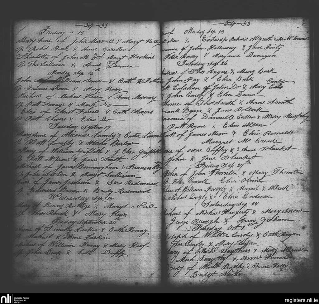 St. Michan's, Dublin city; County of Dublin; Archdiocese of Dublin. Baptisms, Sep. 1833 to Oct. 1833