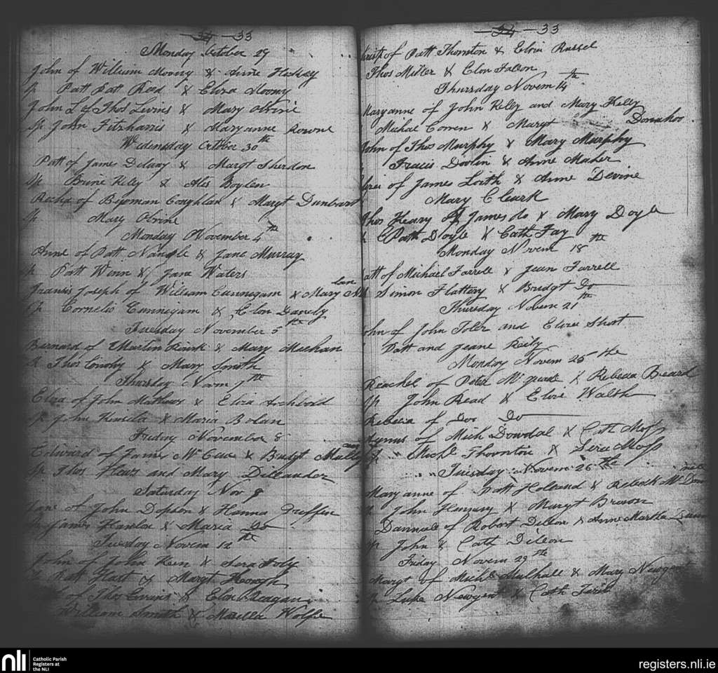 St. Michan's, Dublin city; County of Dublin; Archdiocese of Dublin. Baptisms, Oct. 1833 to Nov. 1833