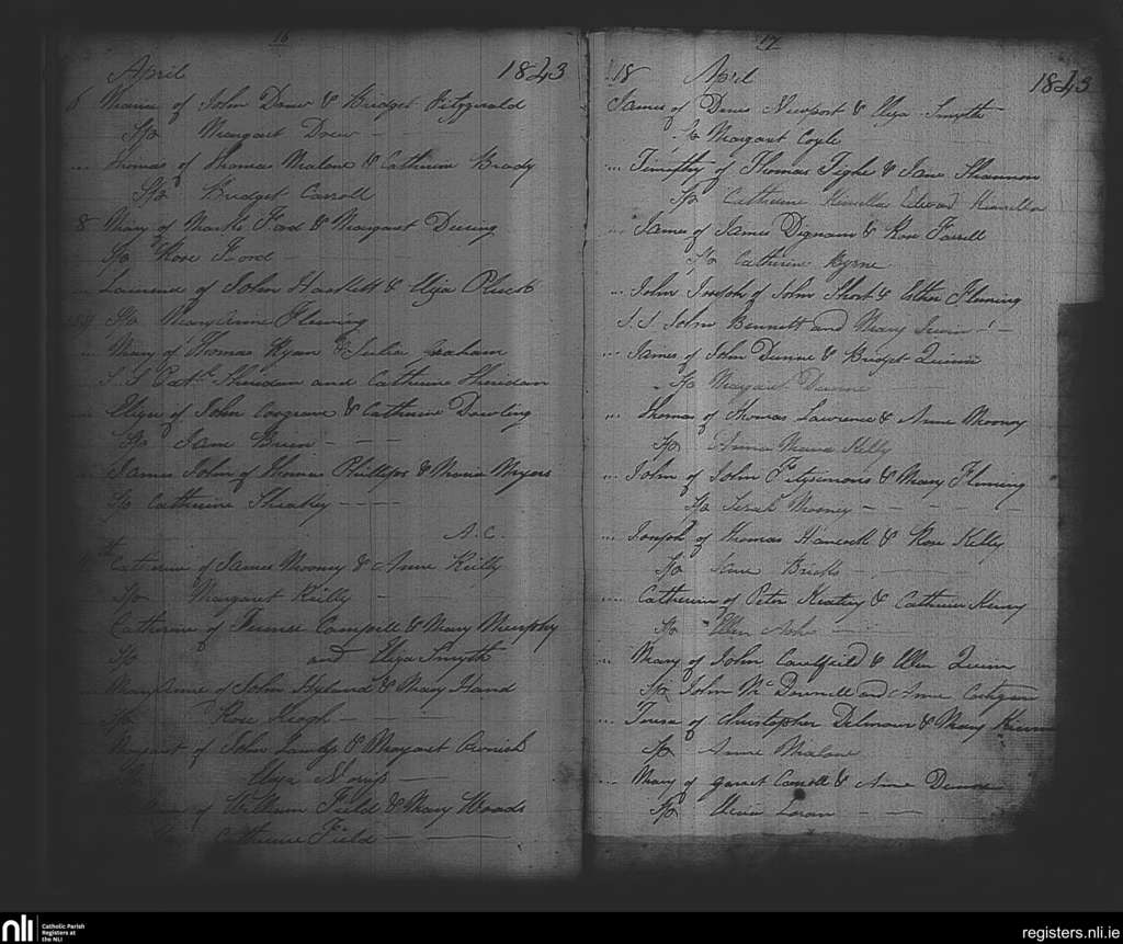 St. Michan's, Dublin city; County of Dublin; Archdiocese of Dublin. Baptisms, Apr. 1843