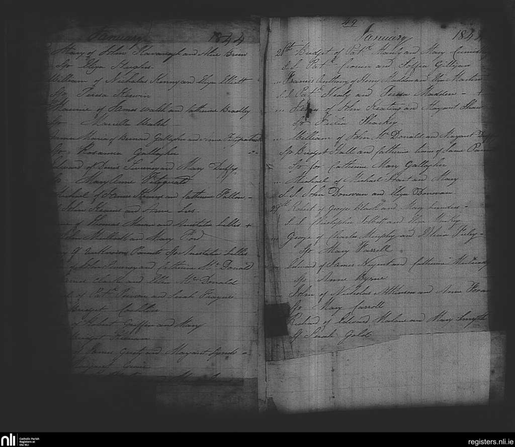 St. Michan's, Dublin city; County of Dublin; Archdiocese of Dublin. Baptisms, Jan. 1844