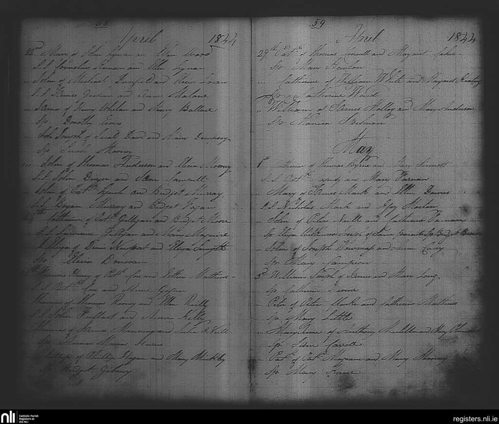 St. Michan's, Dublin city; County of Dublin; Archdiocese of Dublin. Baptisms, Apr. 1844 to May 1844