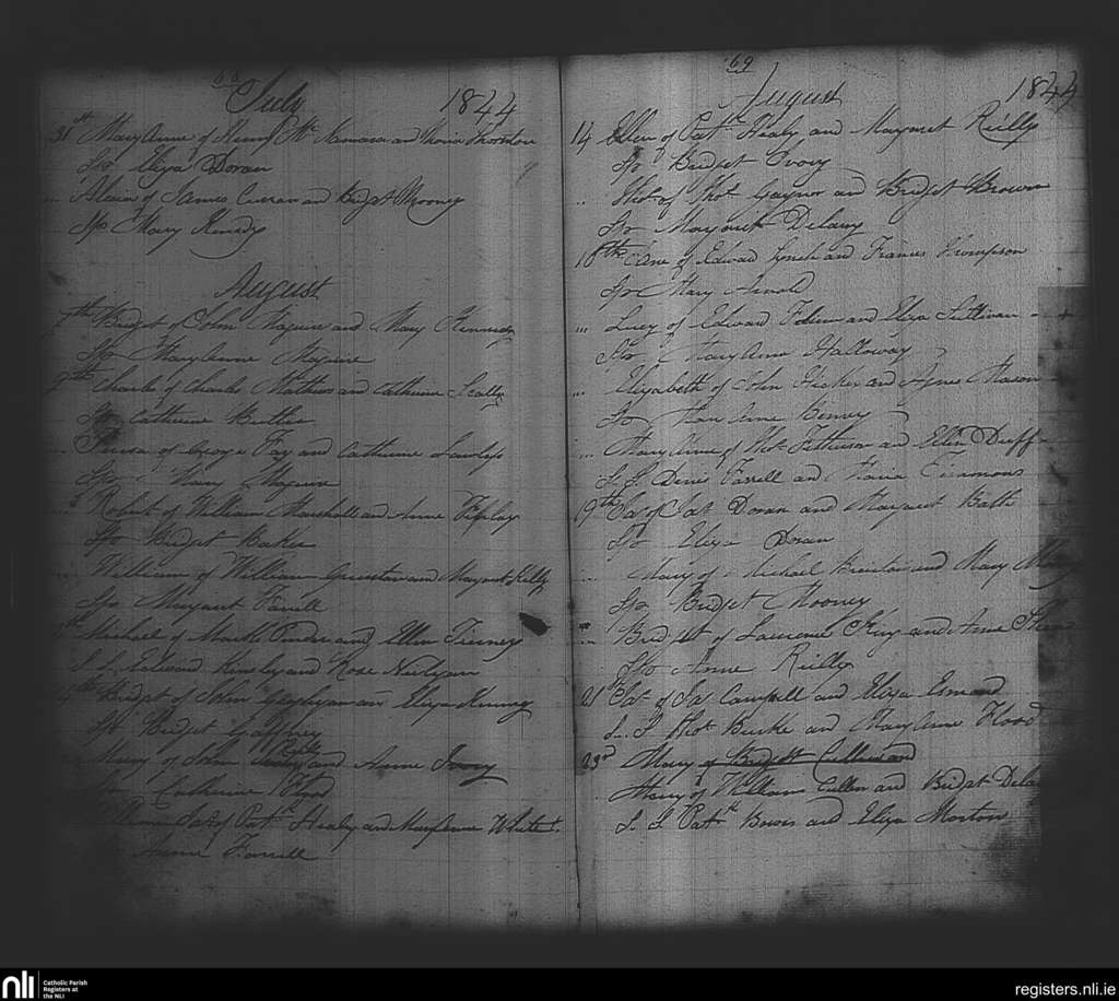 St. Michan's, Dublin city; County of Dublin; Archdiocese of Dublin. Baptisms, July 1844 to Aug. 1844