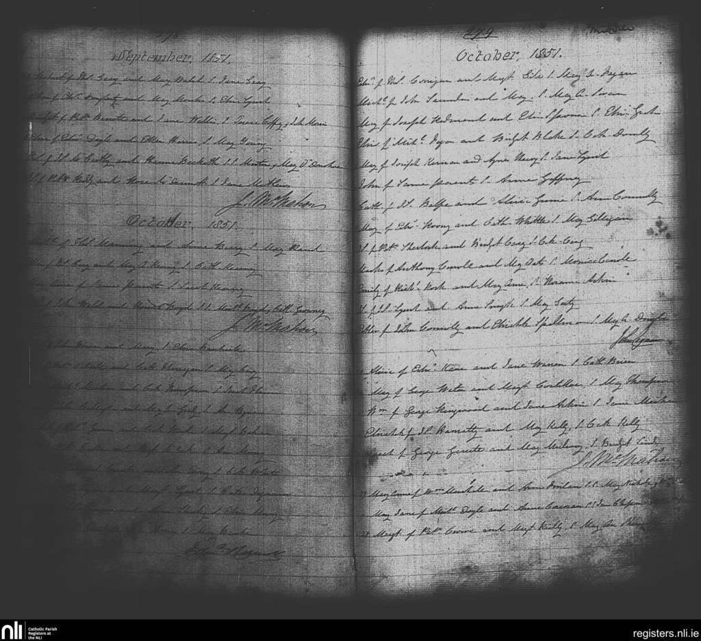 St. Michan's, Dublin city; County of Dublin; Archdiocese of Dublin. Baptisms, Sep. 1851 to Oct. 1851