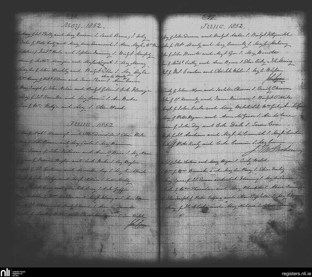 St. Michan's, Dublin city; County of Dublin; Archdiocese of Dublin. Baptisms, May 1852 to June 1852
