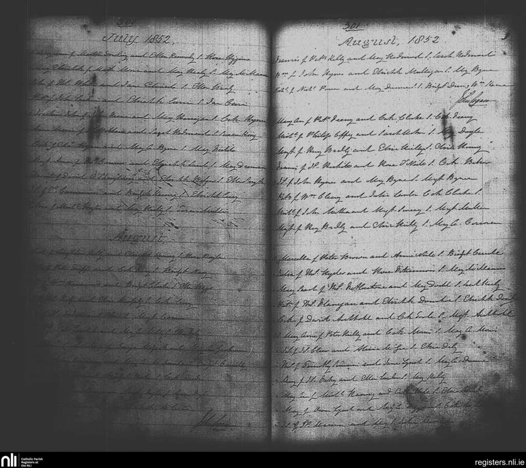 St. Michan's, Dublin city; County of Dublin; Archdiocese of Dublin. Baptisms, July 1852 to Aug. 1852
