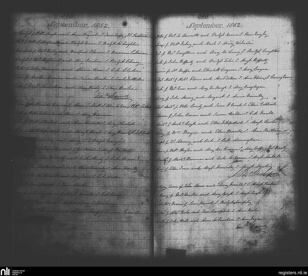 St. Michan's, Dublin city; County of Dublin; Archdiocese of Dublin. Baptisms, Sep. 1852