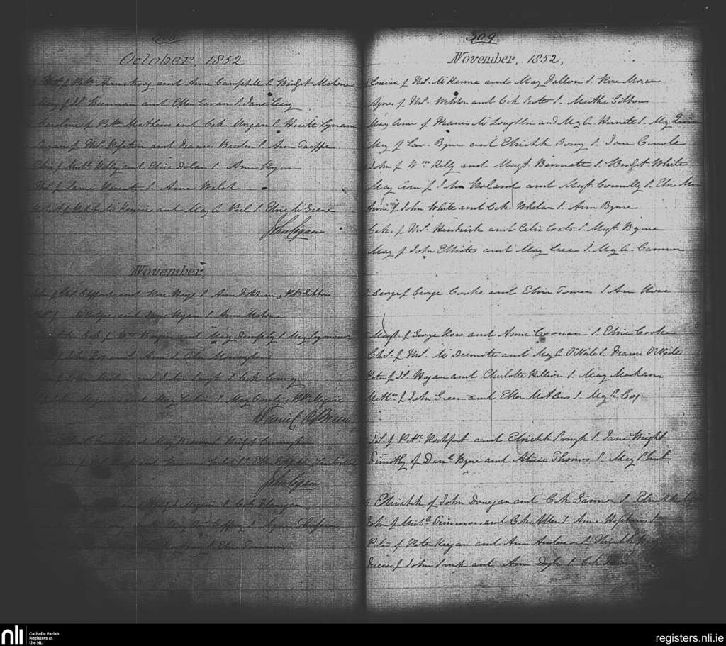 St. Michan's, Dublin city; County of Dublin; Archdiocese of Dublin. Baptisms, Oct. 1852 to Nov. 1852