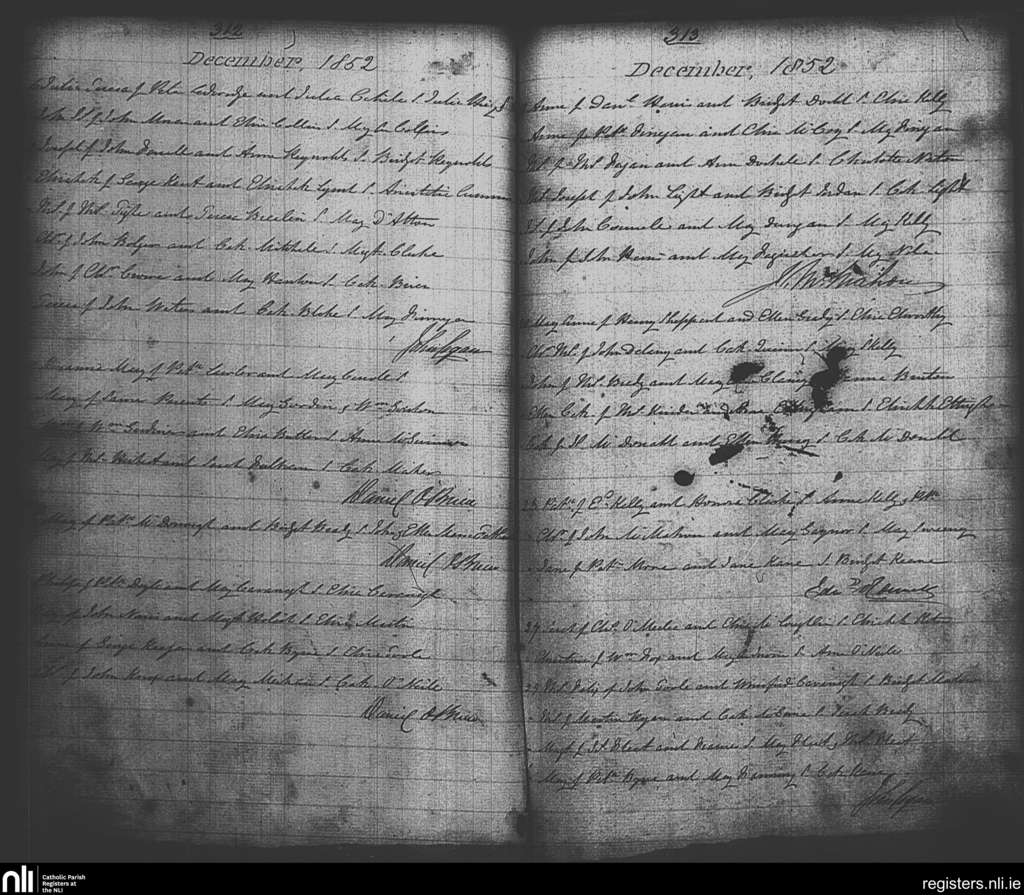 St. Michan's, Dublin city; County of Dublin; Archdiocese of Dublin. Baptisms, Dec. 1852