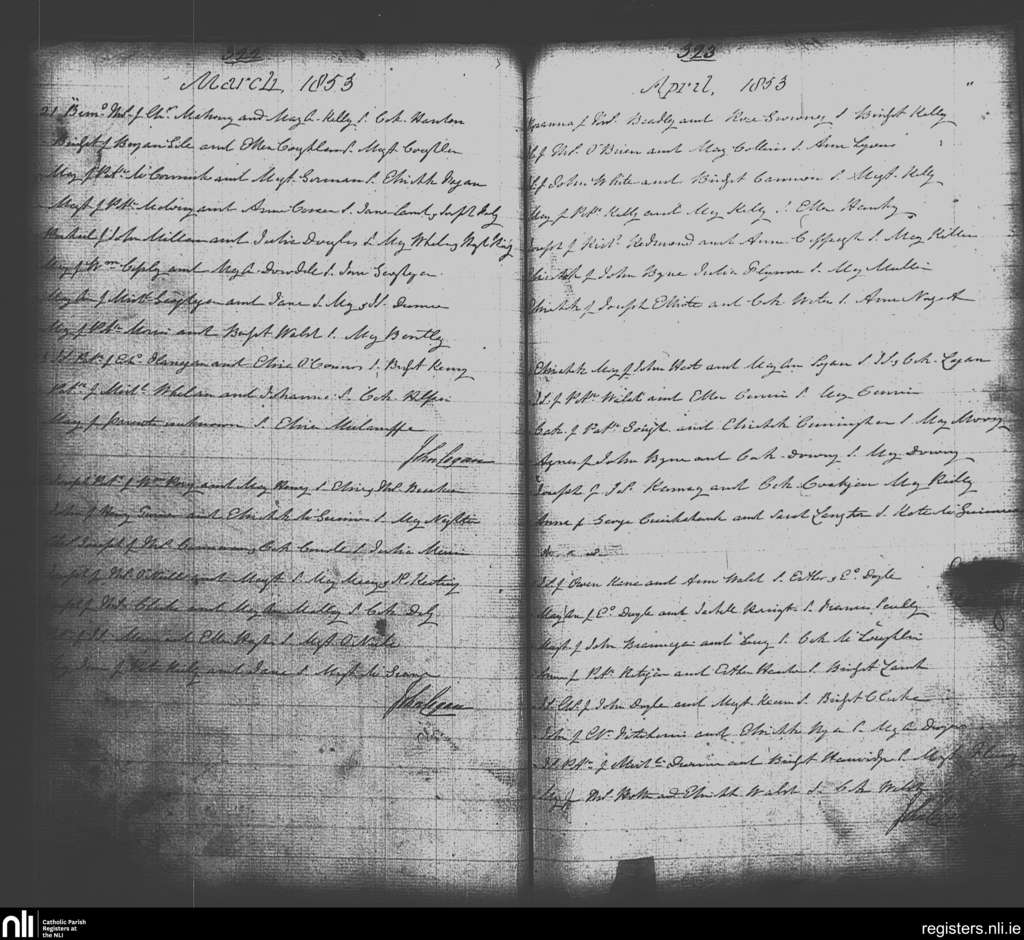 St. Michan's, Dublin city; County of Dublin; Archdiocese of Dublin. Baptisms, Mar. 1853 to Apr. 1853