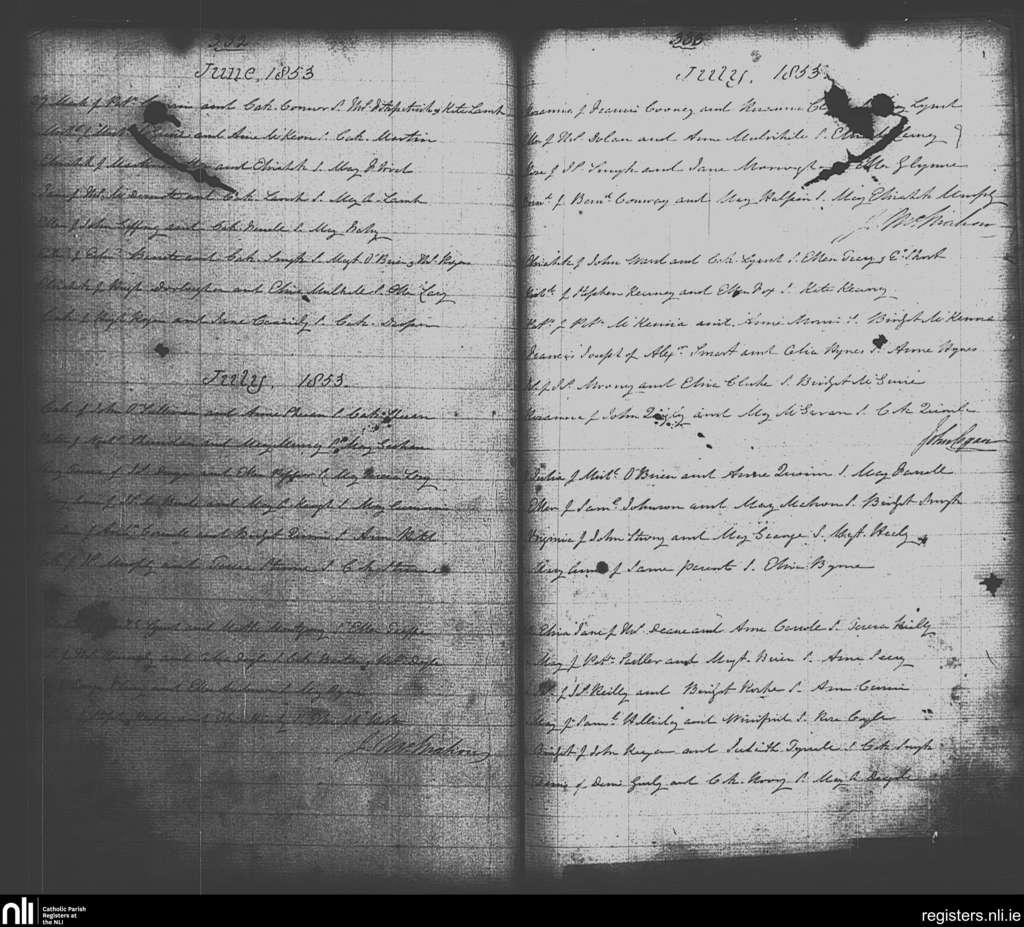 St. Michan's, Dublin city; County of Dublin; Archdiocese of Dublin. Baptisms, June 1853 to July 1853