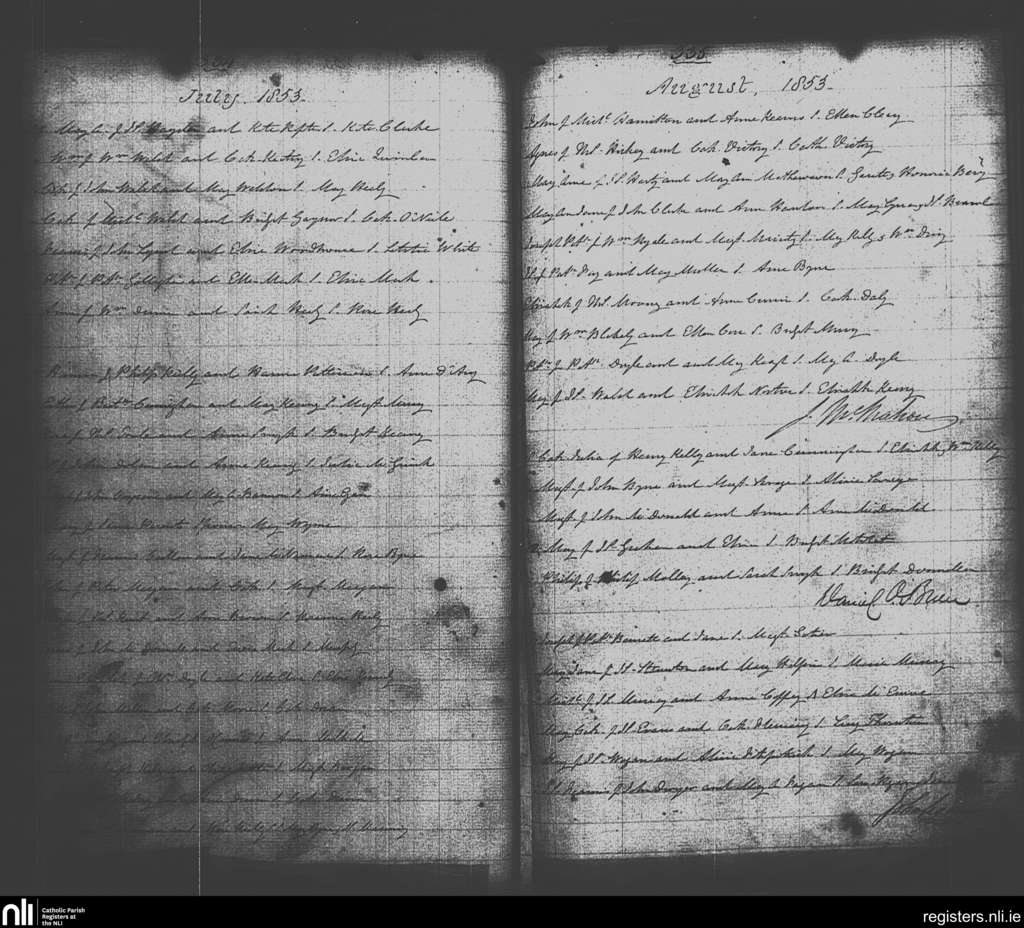 St. Michan's, Dublin city; County of Dublin; Archdiocese of Dublin. Baptisms, July 1853 to Aug. 1853