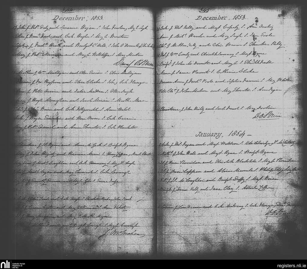 St. Michan's, Dublin city; County of Dublin; Archdiocese of Dublin. Baptisms, Dec. 1853 to Jan. 1854