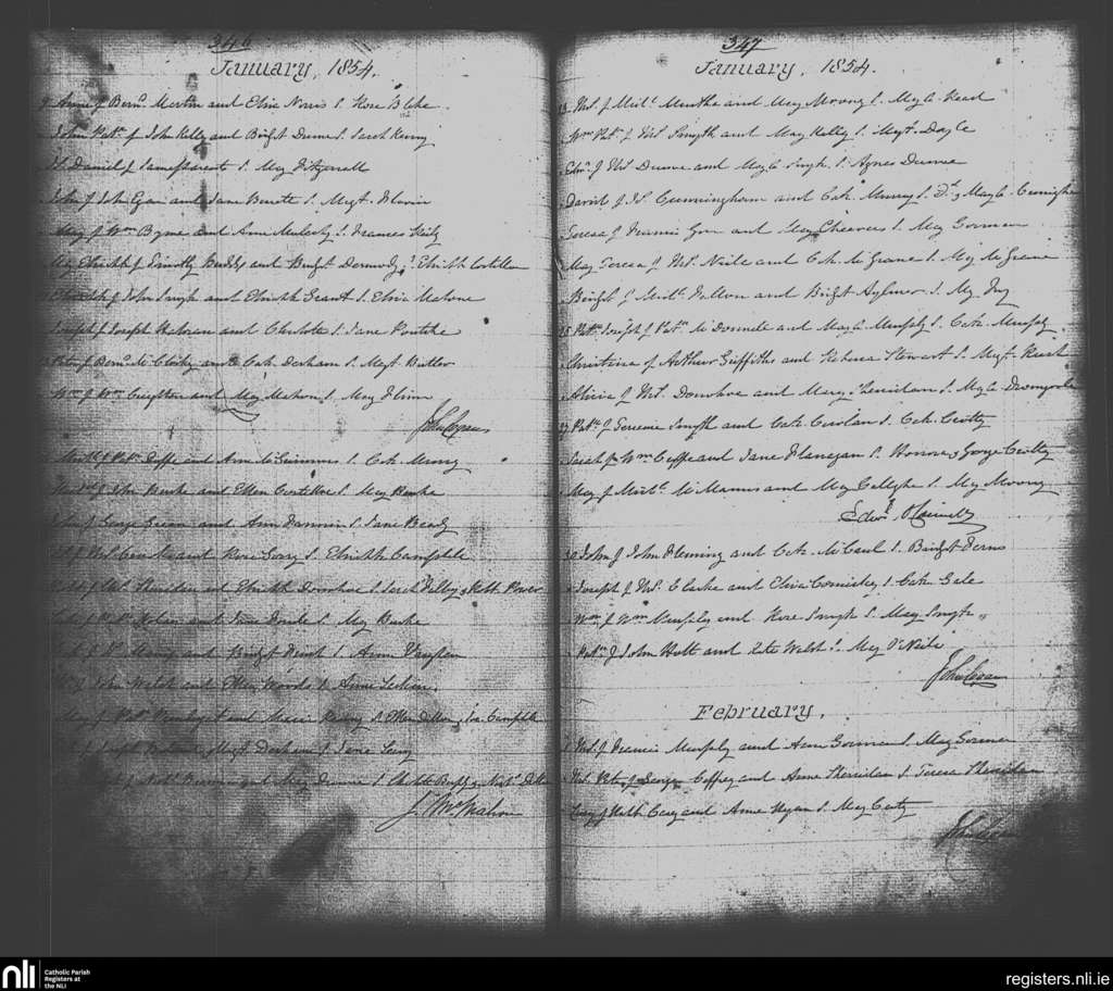 St. Michan's, Dublin city; County of Dublin; Archdiocese of Dublin. Baptisms, Jan. 1854 to Feb. 1854