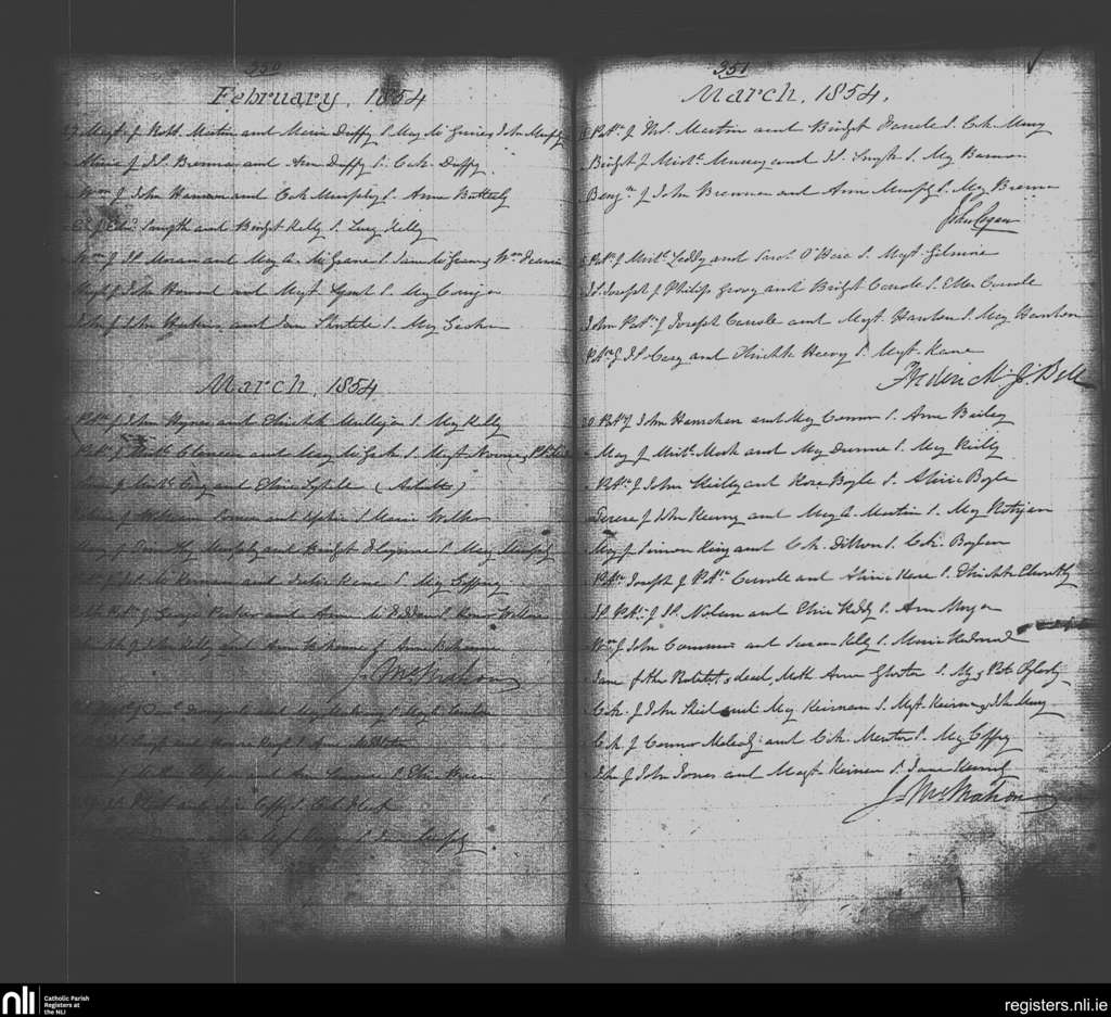 St. Michan's, Dublin city; County of Dublin; Archdiocese of Dublin. Baptisms, Feb. 1854 to Mar. 1854