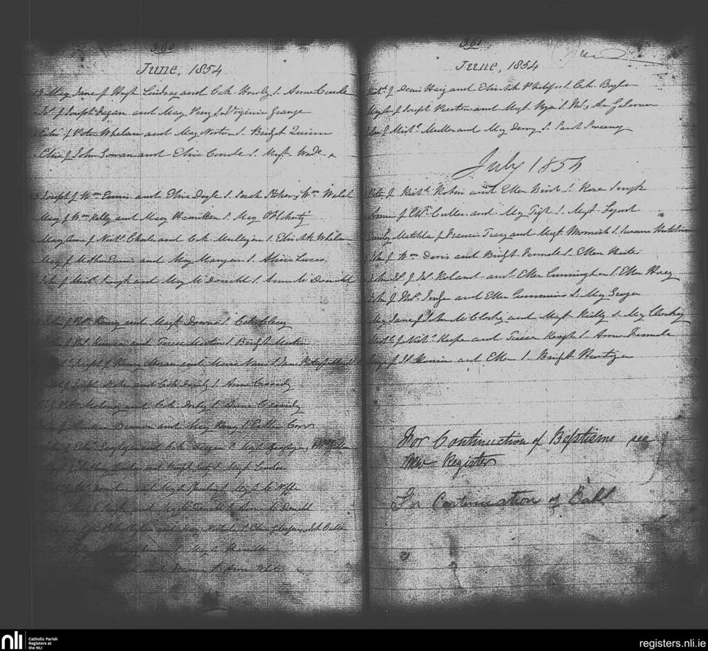 St. Michan's, Dublin city; County of Dublin; Archdiocese of Dublin. Baptisms, June 1854 to July 1854