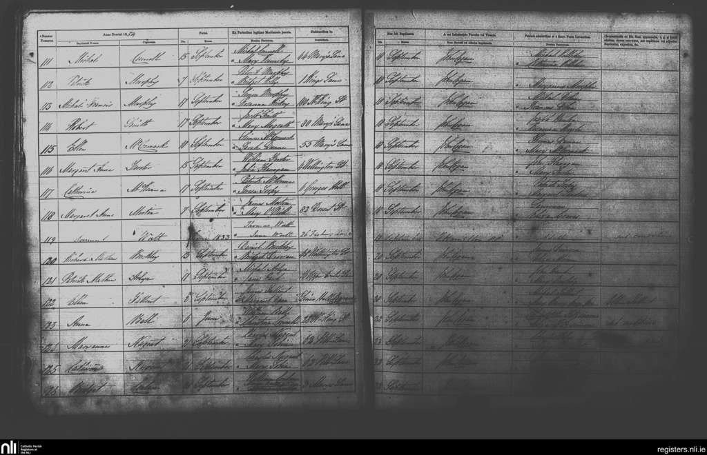 St. Michan's, Dublin city; County of Dublin; Archdiocese of Dublin. Baptisms, Sep. 1854