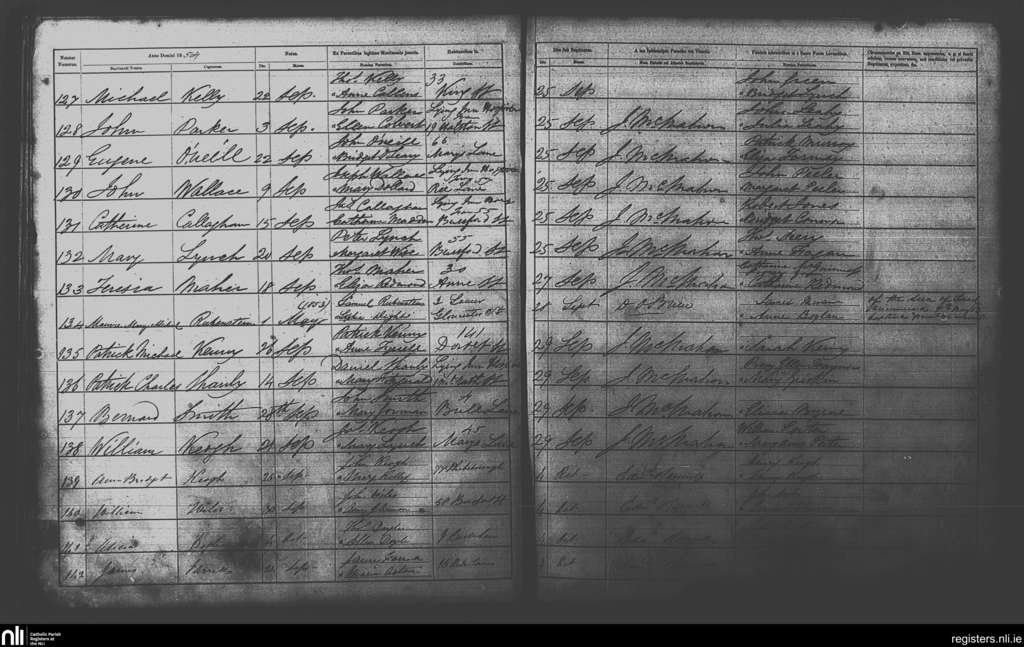 St. Michan's, Dublin city; County of Dublin; Archdiocese of Dublin. Baptisms, Sep. 1854 to Oct. 1854