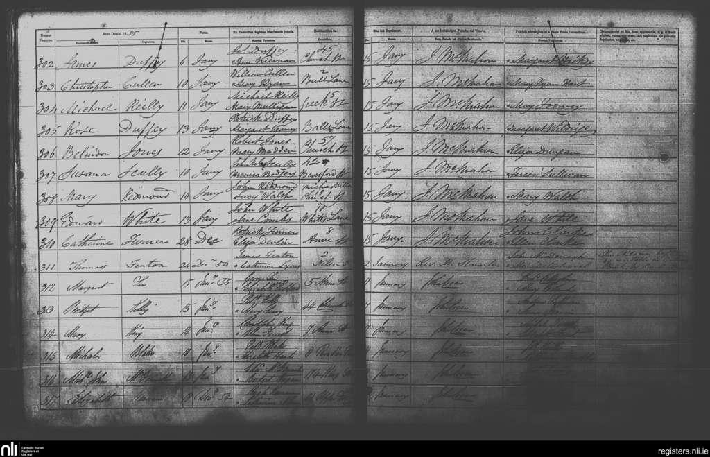 St. Michan's, Dublin city; County of Dublin; Archdiocese of Dublin. Baptisms, Jan. 1855