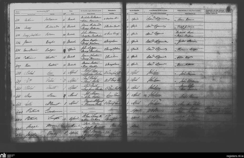St. Michan's, Dublin city; County of Dublin; Archdiocese of Dublin. Baptisms, Apr. 1855