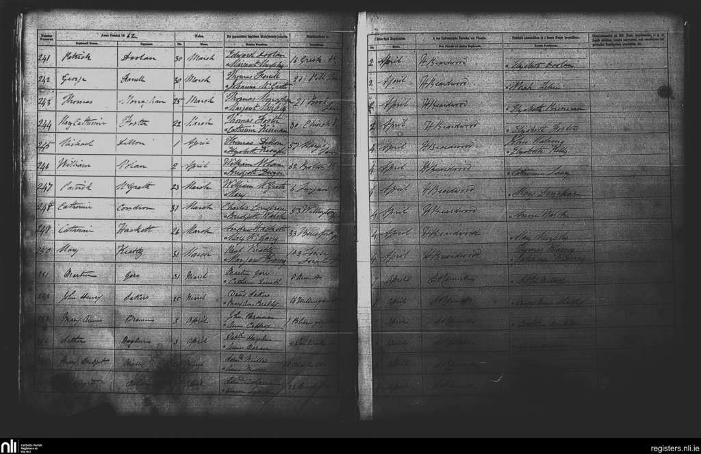St. Michan's, Dublin city; County of Dublin; Archdiocese of Dublin. Baptisms, Apr. 1862