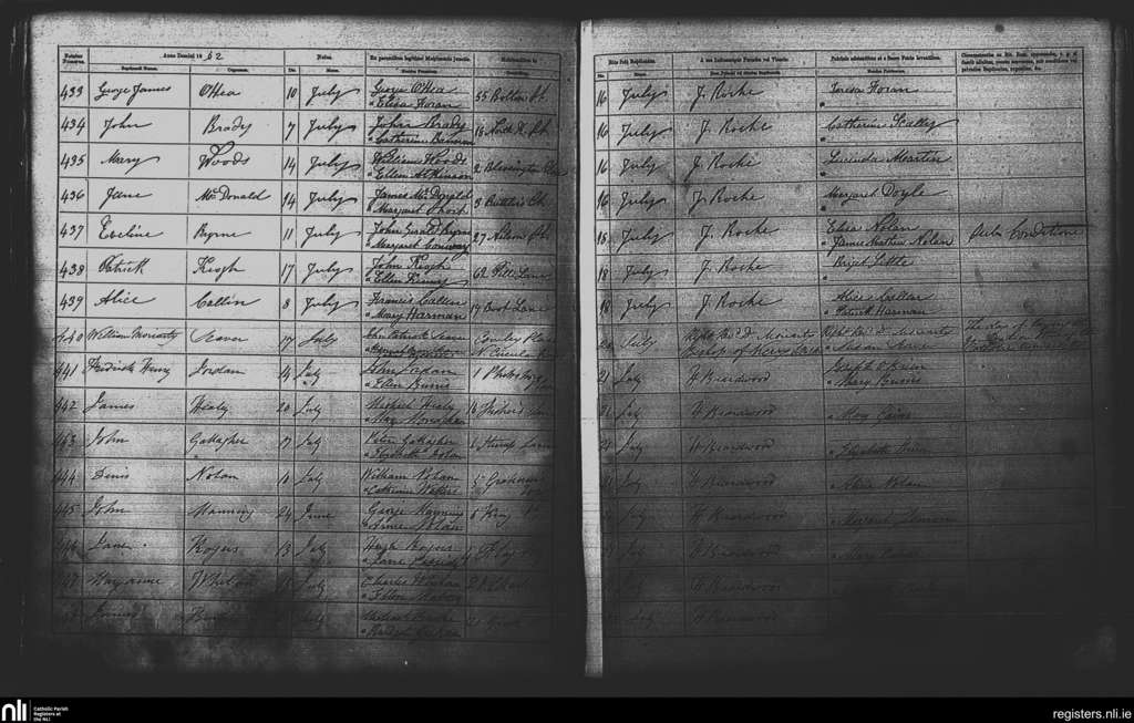 St. Michan's, Dublin city; County of Dublin; Archdiocese of Dublin. Baptisms, July 1862