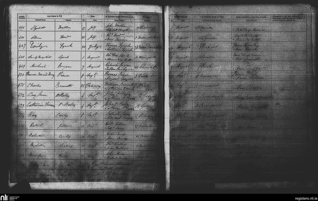 St. Michan's, Dublin city; County of Dublin; Archdiocese of Dublin. Baptisms, Aug. 1862