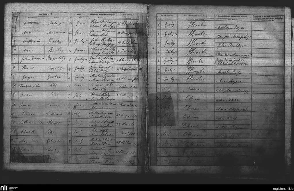 St. Michan's, Dublin city; County of Dublin; Archdiocese of Dublin. Baptisms, July 1865