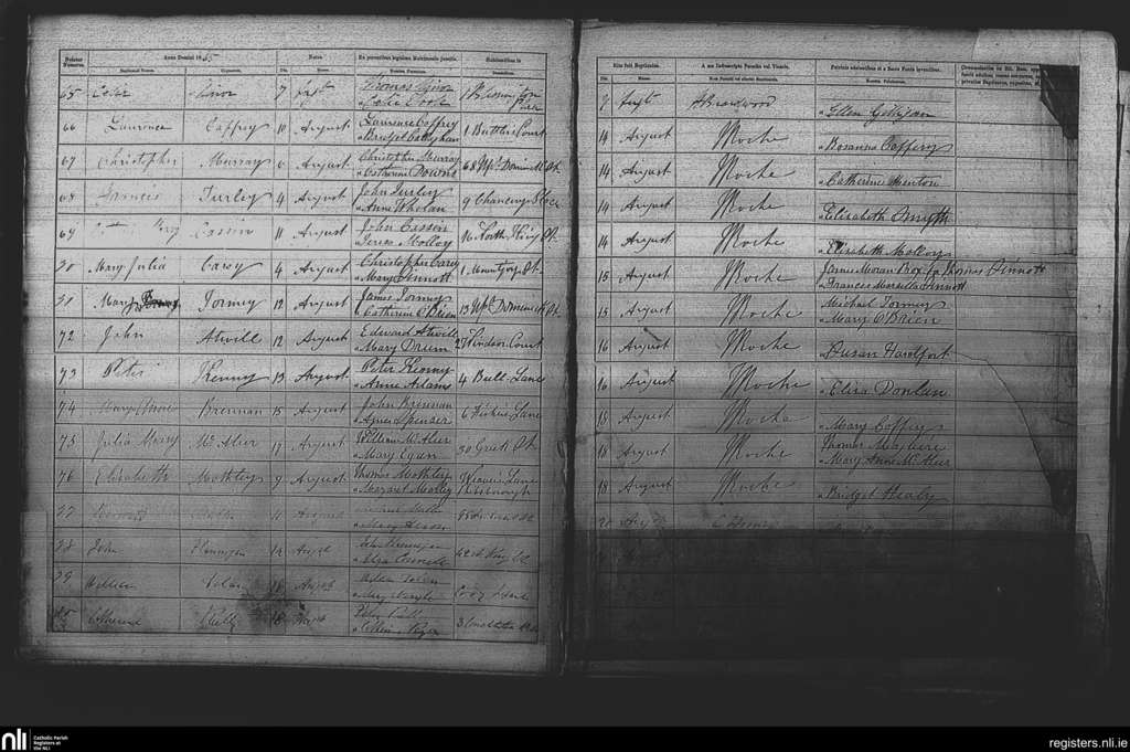 St. Michan's, Dublin city; County of Dublin; Archdiocese of Dublin. Baptisms, Aug. 1865