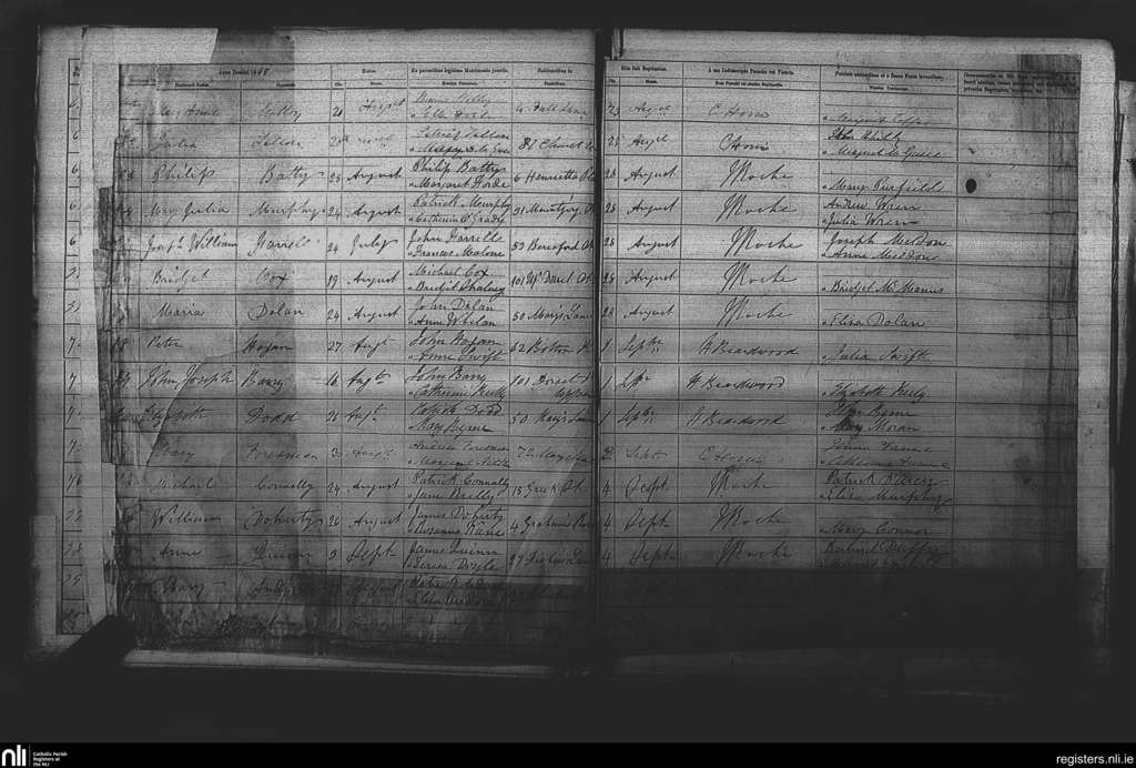 St. Michan's, Dublin city; County of Dublin; Archdiocese of Dublin. Baptisms, Aug. 1865 to Sep. 1865