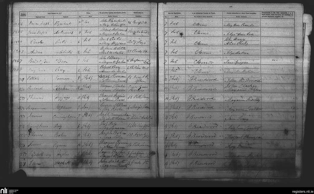 St. Michan's, Dublin city; County of Dublin; Archdiocese of Dublin. Baptisms, Feb. 1866