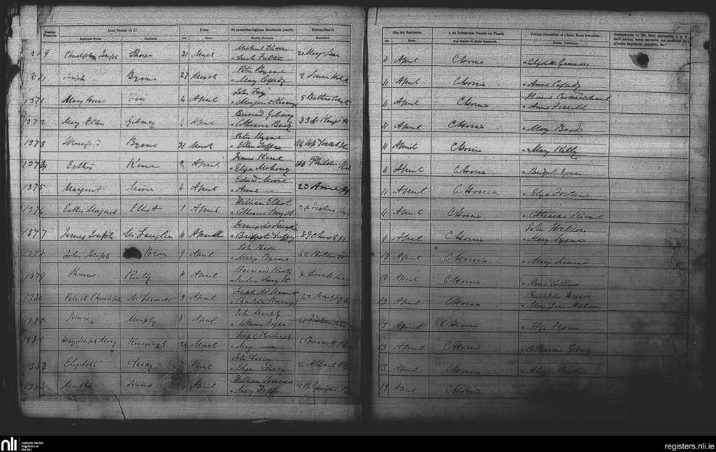 St. Michan's, Dublin city; County of Dublin; Archdiocese of Dublin. Baptisms, Apr. 1866