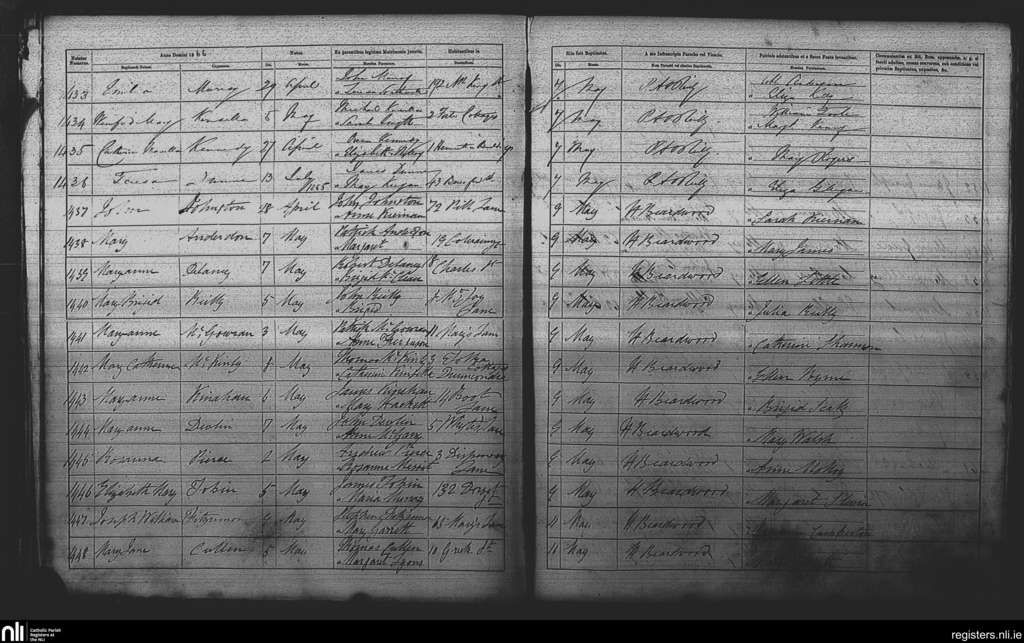 St. Michan's, Dublin city; County of Dublin; Archdiocese of Dublin. Baptisms, May 1866