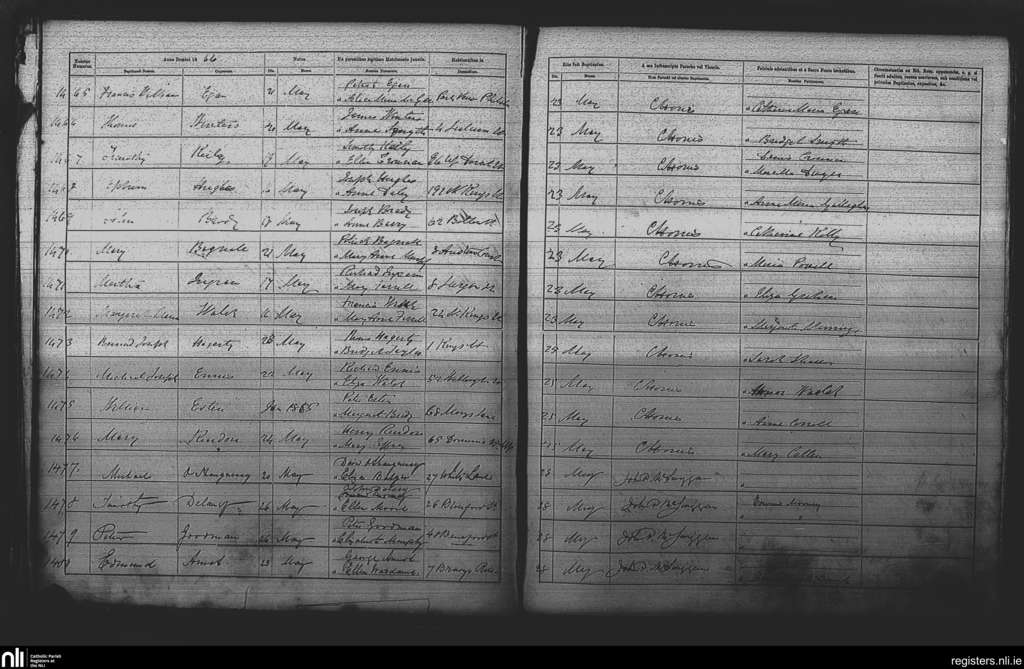 St. Michan's, Dublin city; County of Dublin; Archdiocese of Dublin. Baptisms, May 1866