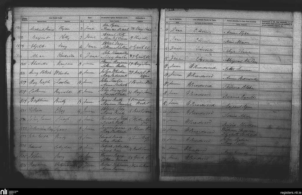 St. Michan's, Dublin city; County of Dublin; Archdiocese of Dublin. Baptisms, June 1866