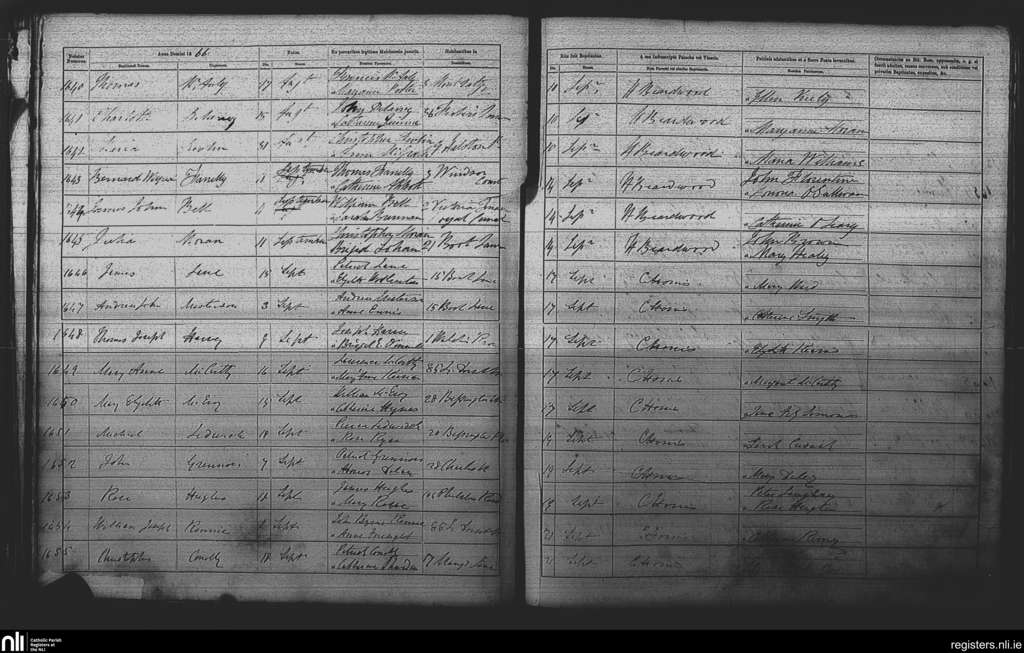 St. Michan's, Dublin city; County of Dublin; Archdiocese of Dublin. Baptisms, Sep. 1866