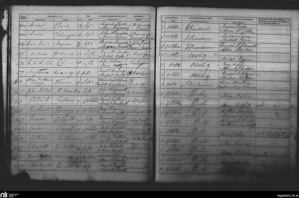 St. Michan's, Dublin city; County of Dublin; Archdiocese of Dublin. Baptisms, Oct. 1866