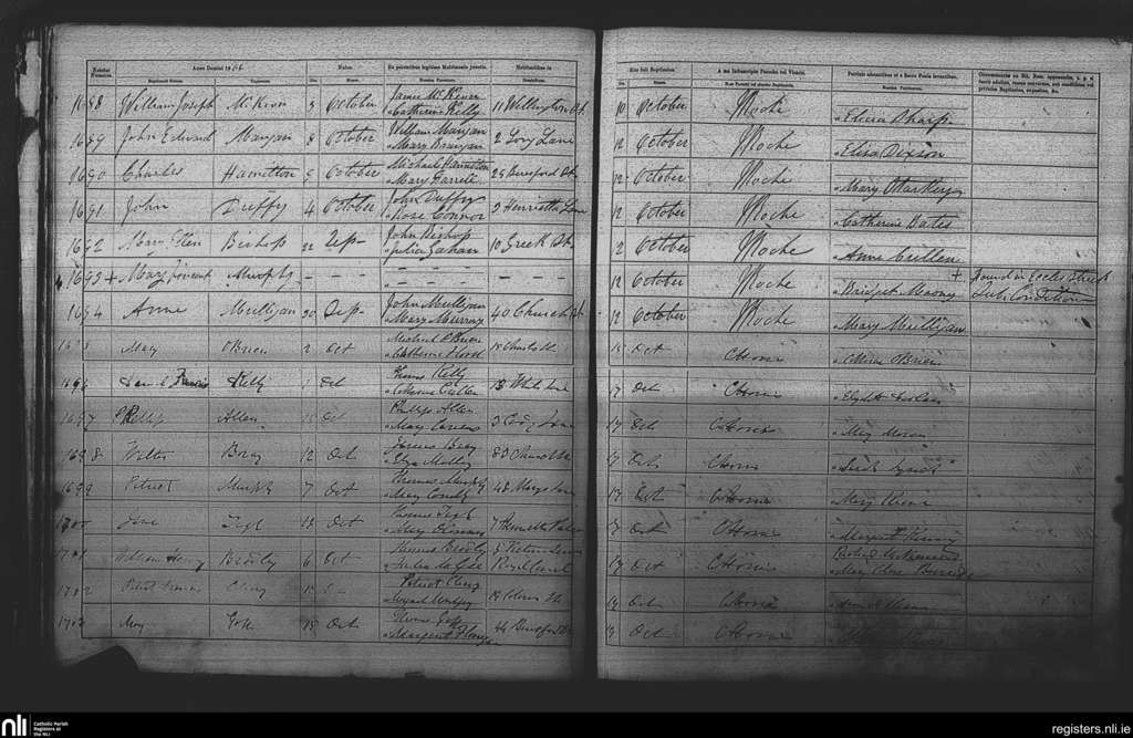 St. Michan's, Dublin city; County of Dublin; Archdiocese of Dublin. Baptisms, Oct. 1866