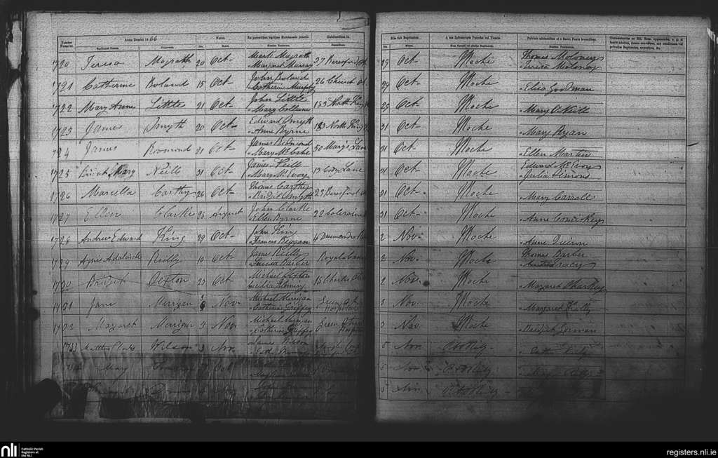 St. Michan's, Dublin city; County of Dublin; Archdiocese of Dublin. Baptisms, Oct. 1866 to Nov. 1866