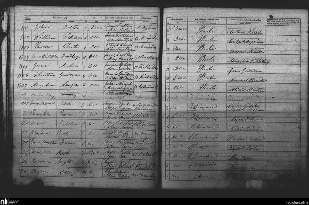 St. Michan's, Dublin city; County of Dublin; Archdiocese of Dublin. Baptisms, Dec. 1866