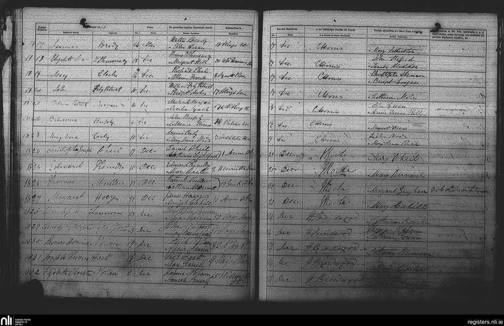 St. Michan's, Dublin city; County of Dublin; Archdiocese of Dublin. Baptisms, Dec. 1866